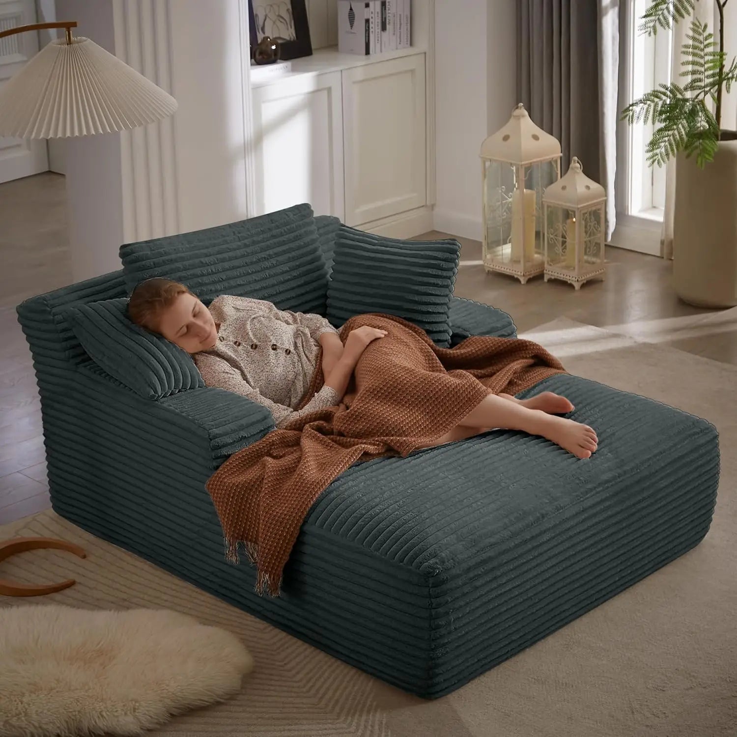 49.2" Oversized Chaise Lounge Chair With Corduroy Fabric