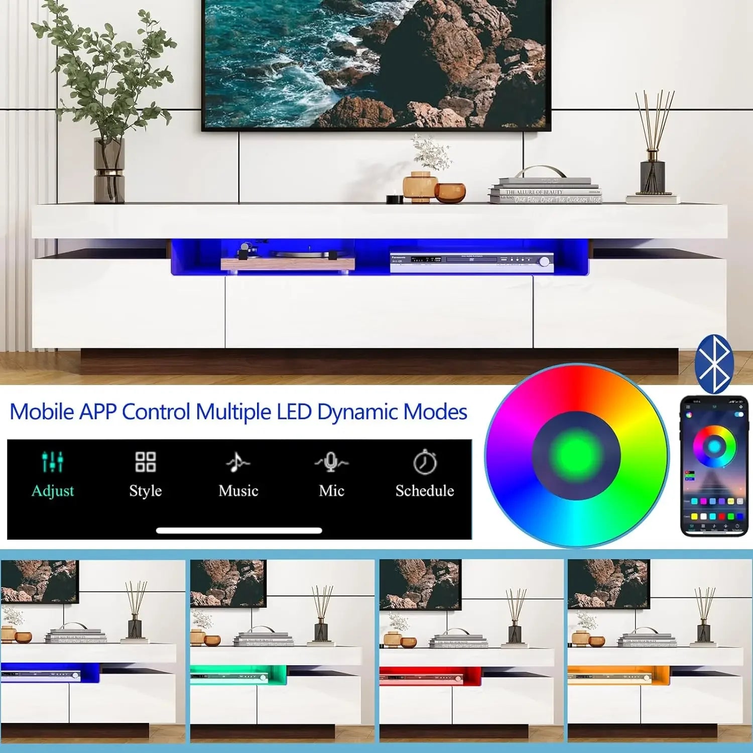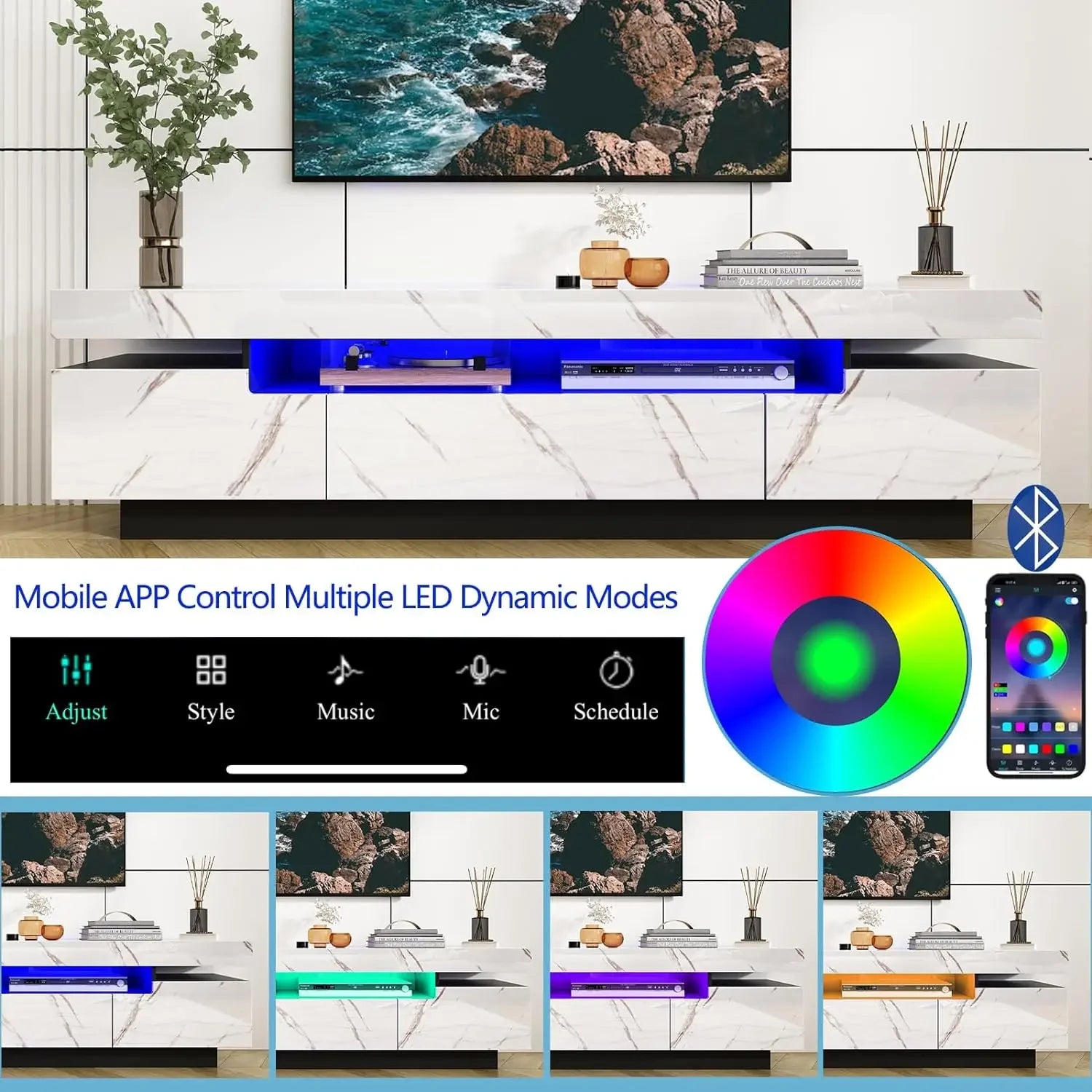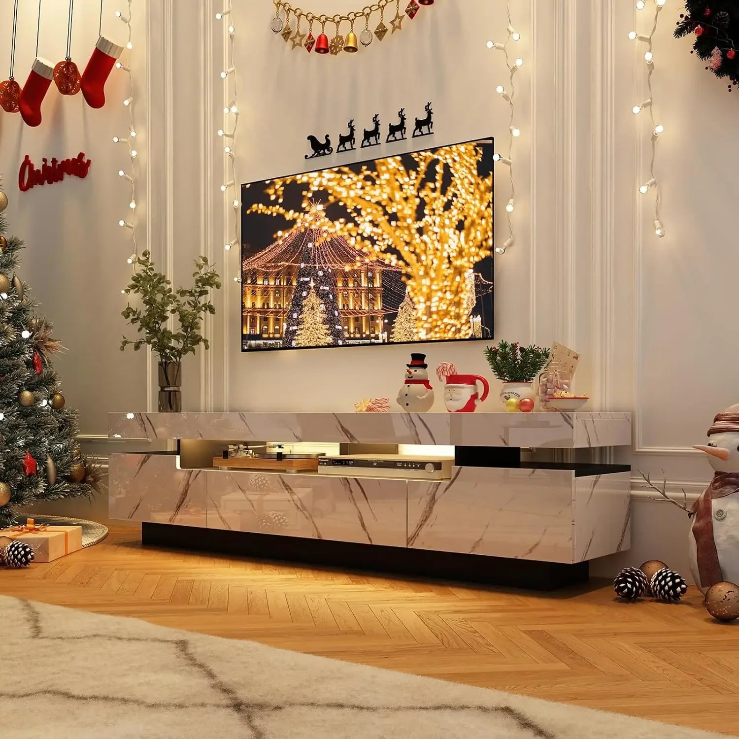 70" Beautiful Marble Look, High Gloss Entertainment Center for 75/80 inch TV