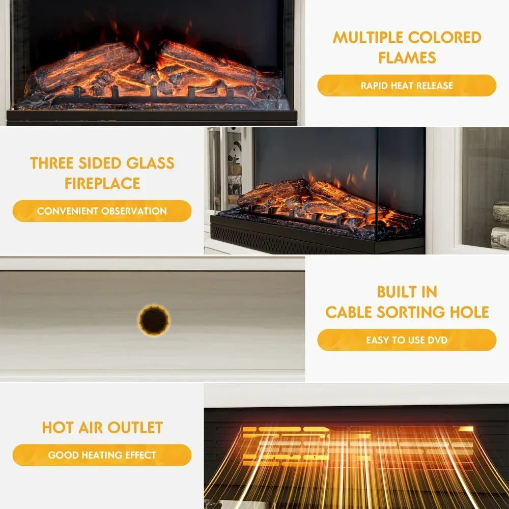 Beautiful and Timeless Designed Entertainment Console with Glass Fireplace