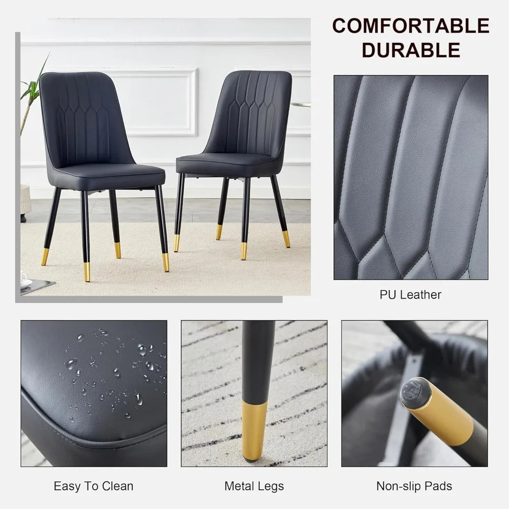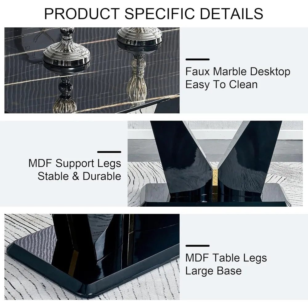 Black Dining Room Table Set for 6, Modern Marble Dining Table with 6 Metal Leg Chairs Kitchen Table Chair Set for Dining Room