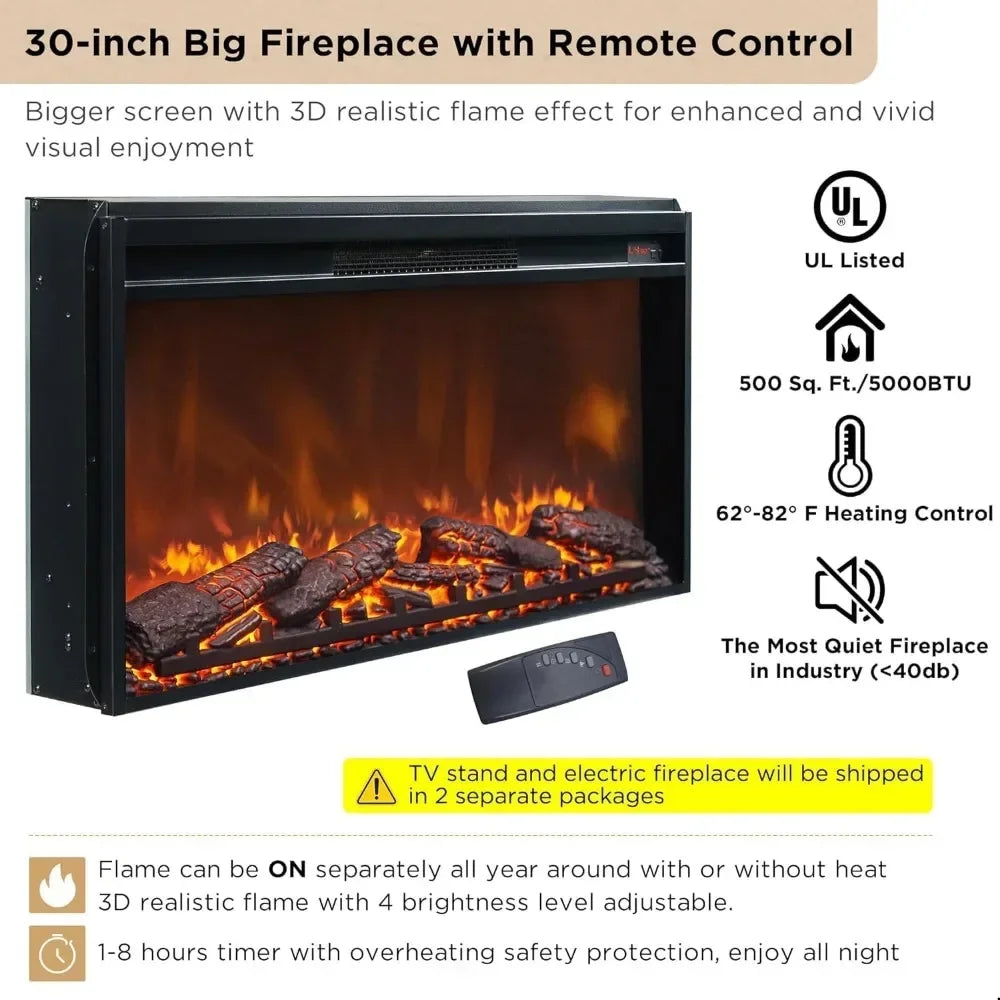 Modern Chic Fluted Entertainment Console for up to 80" TV with 30" Fireplace