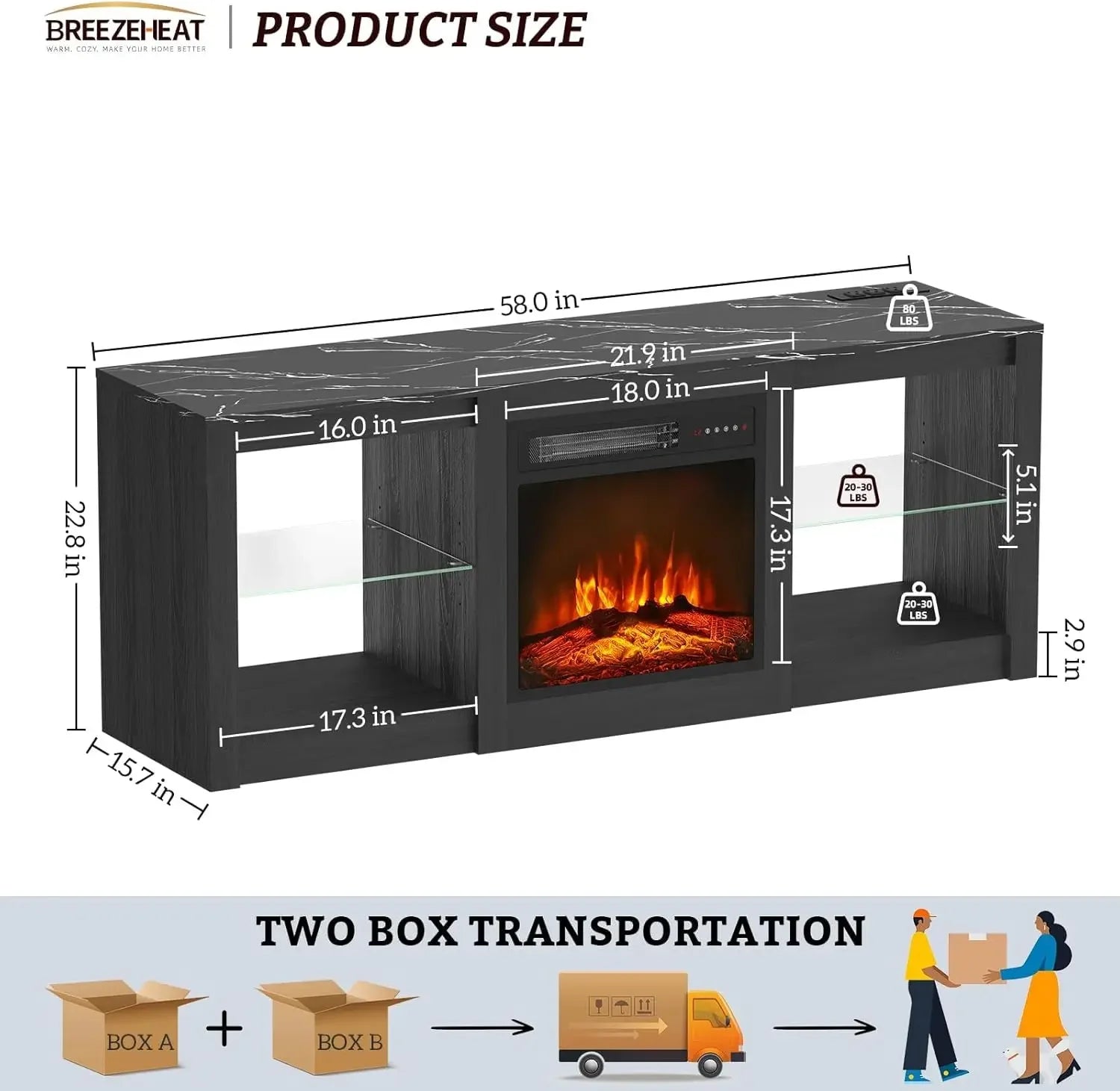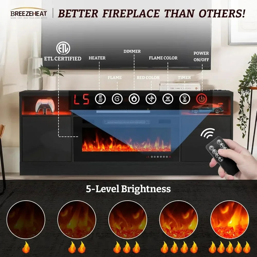 Modern Entertainment Center with LED Lights and Fireplace Insert