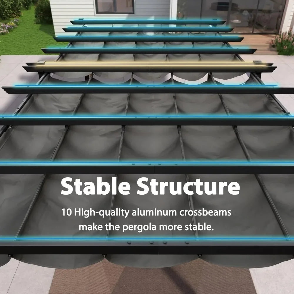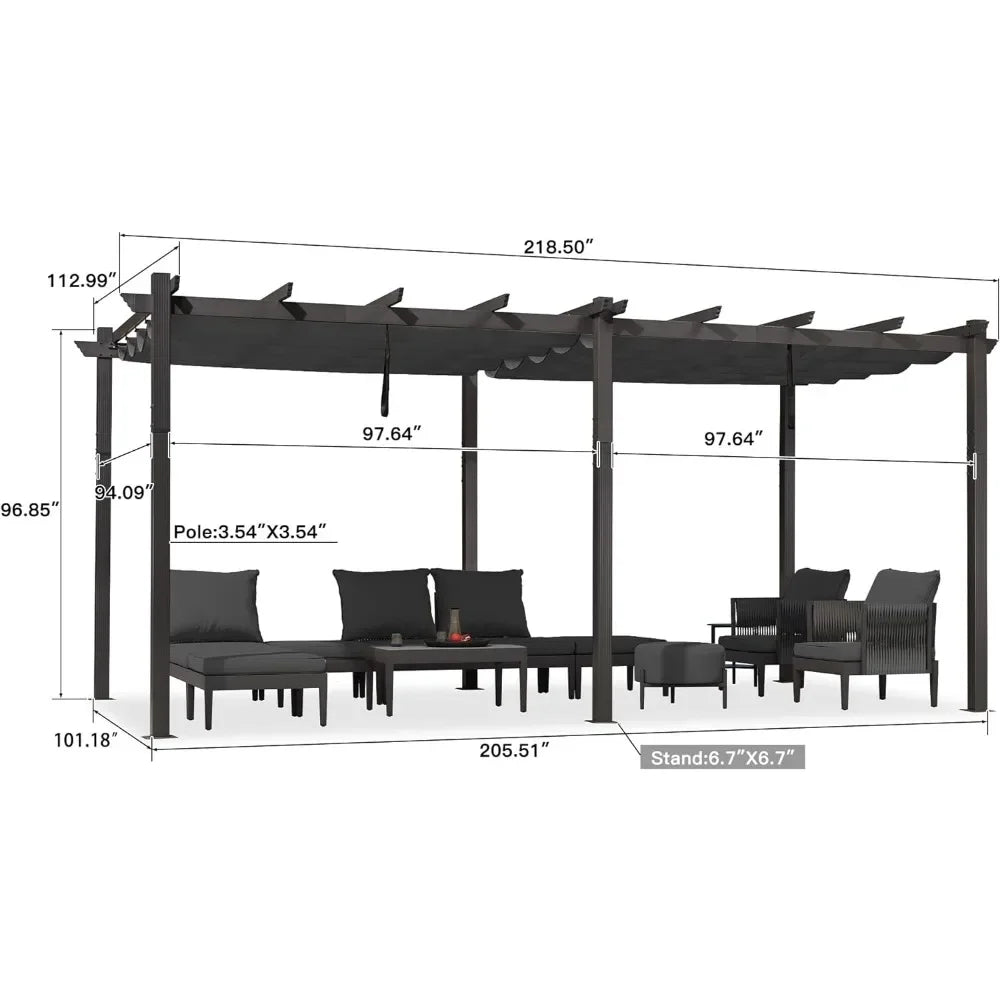 Outdoor Pergola with Retractable Canopy Aluminum Shelter
