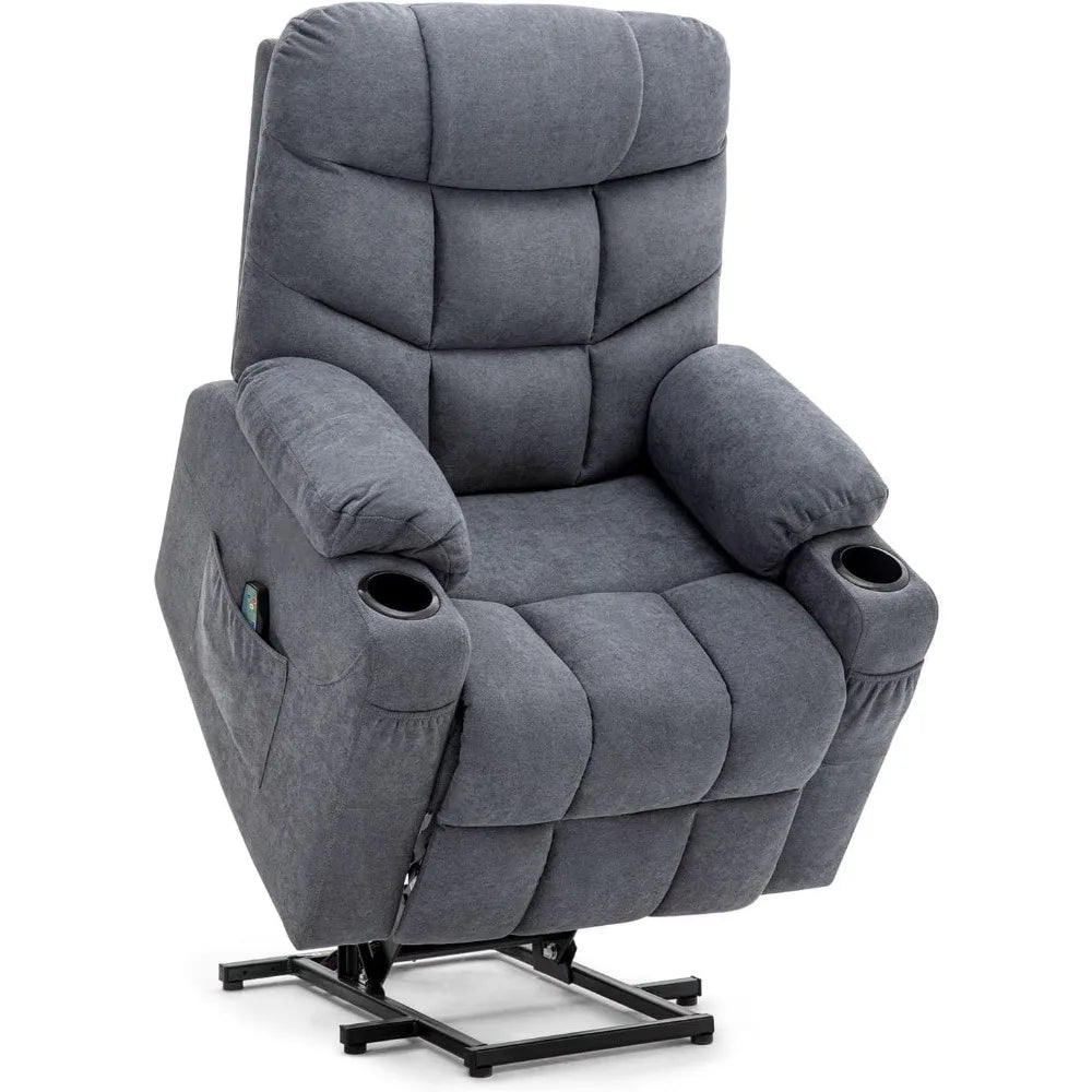 Power Lift Recliner with Heated Vibration Massage and Side Pockets, USB Charge Port & Cup Holders