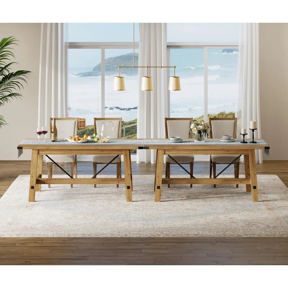 Very Sturdy Wooden Farmhouse Dining Table with Heavy Duty Wooden Legs
